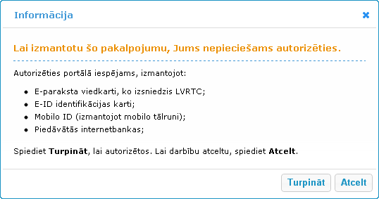 Lai autorizētos portālā jānospiež saite Autorizēties, lai sāktu pie tā pakalpojuma,