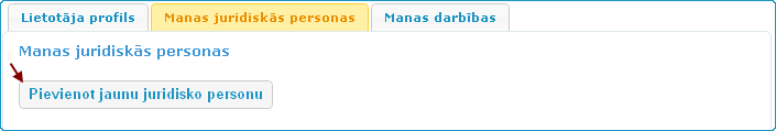 Lai pievienotu jaunu juridiskās personas profilu, jānospiež poga Pēc pogas nospiešanas, tiek atvērts logs, kurā vispārīgi