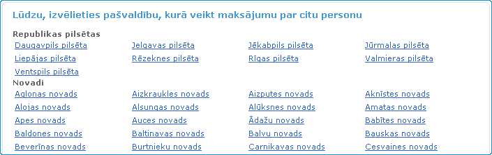 personu, jānospiež uz izvēles Lai uzsāktu apmaksu, ir jāizvēlas pašvaldība, par kurā