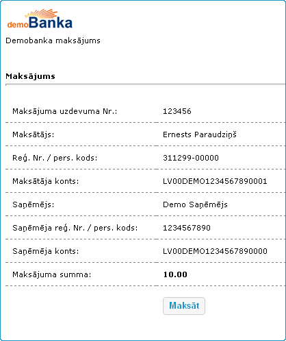 Tiek attēlots maksājuma uzdevums un, nospiežot pogu