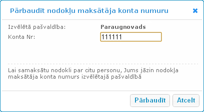 vai novadu, tiks atvērts logs Pārbaudīt nodokļu maksātāja