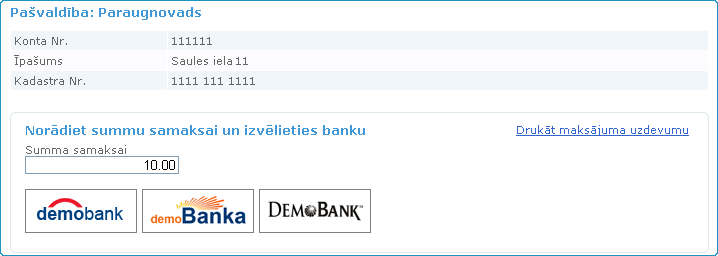 norādītajā pašvaldībā un kadastra numurs. Norāda summu samaksai un noklikšķina