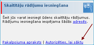 skaitītāju rādījumu nodošanai. Lai iesniegtu skaitītāju rādījumus, nepieciešams autorizēties